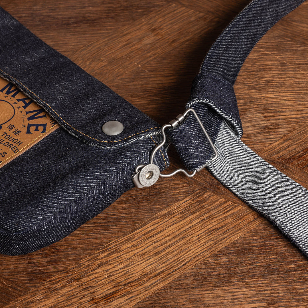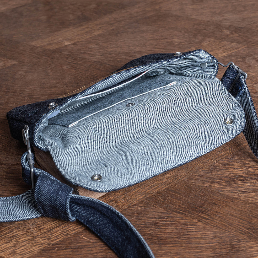 - Original denim used - 1 outside pocket - 2 inside pockets